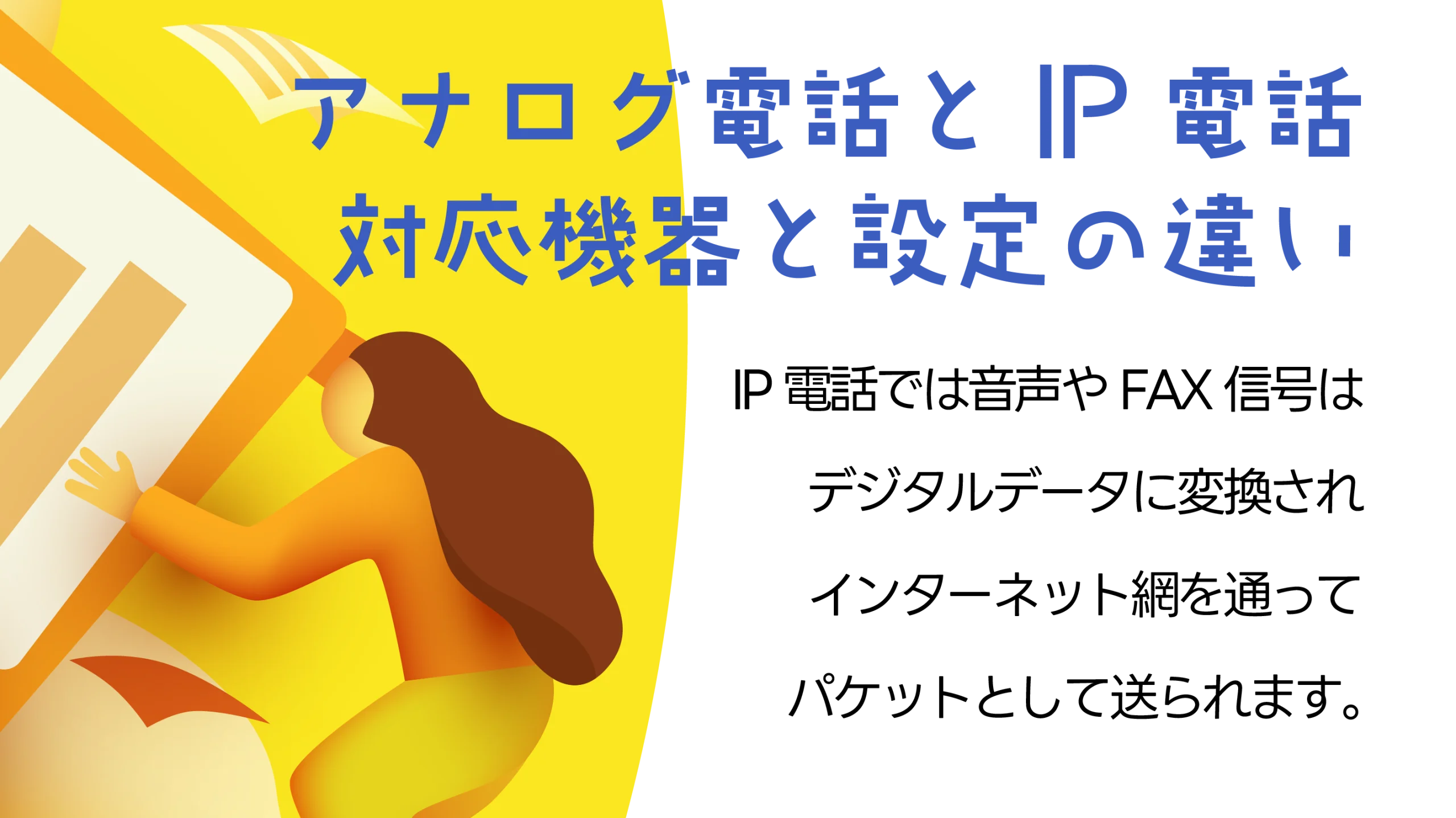 アナログ回線のFAXとIP電話のFAXでは、信号伝送の仕組みが異なります。