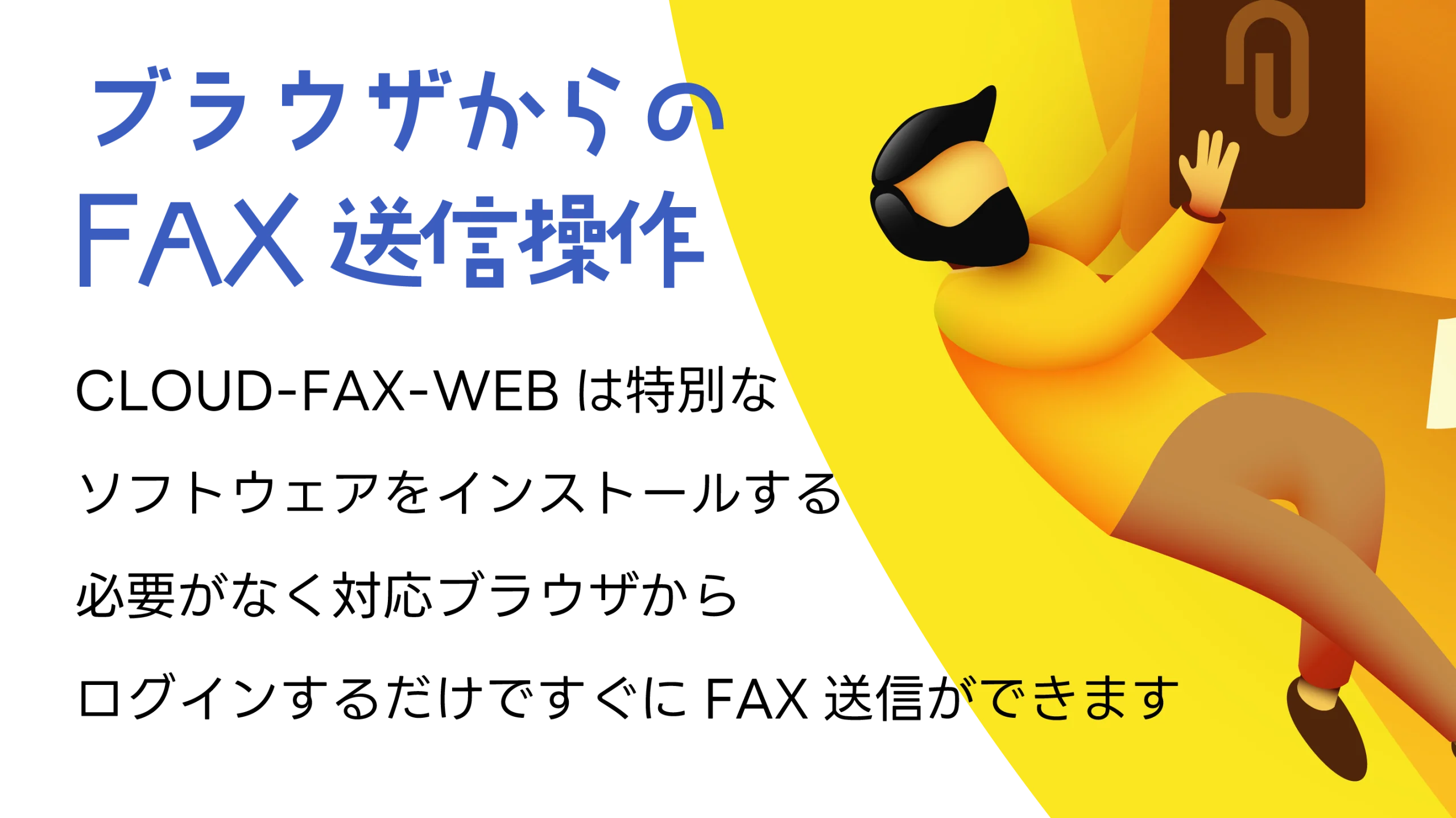 CLOUD-FAX-WEBの最大の特徴は、特別なソフトウェアをインストールする必要がなく、対応ブラウザからログインするだけですぐにFAX送信ができる点です。