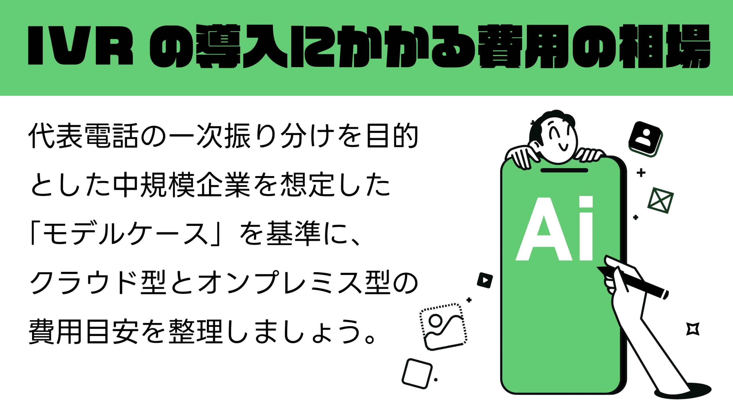 そこで、代表電話の一次振り分けを目的とした中規模企業を想定した「モデルケース」を基準に、クラウド型とオンプレミス型の費用目安を整理します。
