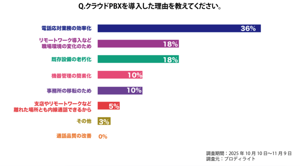 このうち、クラウドPBXは、電話対応の効率化やテレワーク対応、業務プロセスの見直しといった業務改善・DX推進を目的としたITツールに位置づけられています。