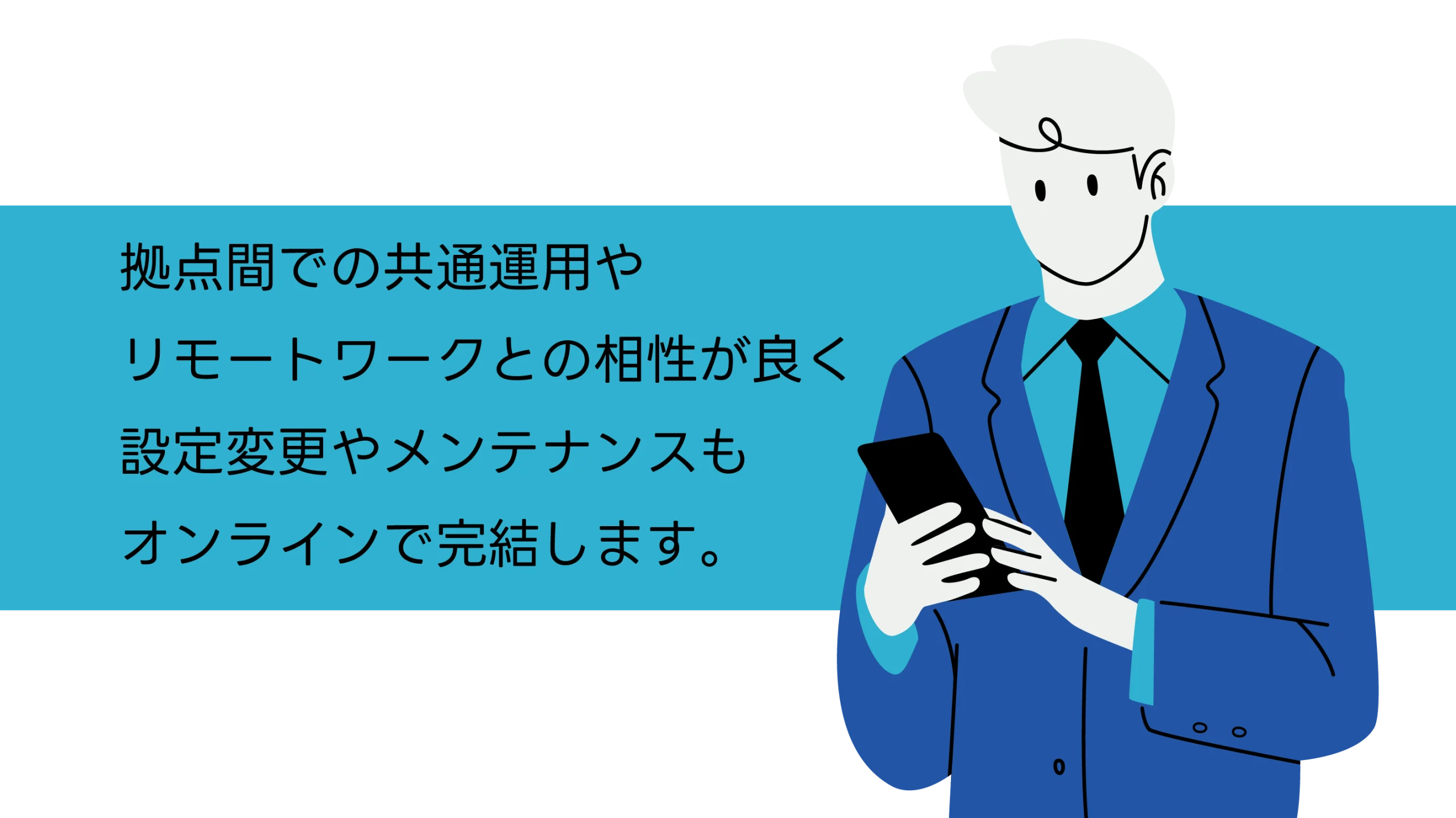 拠点間での共通運用やリモートワークとの相性が良く、設定変更やメンテナンスもオンラインで完結します。