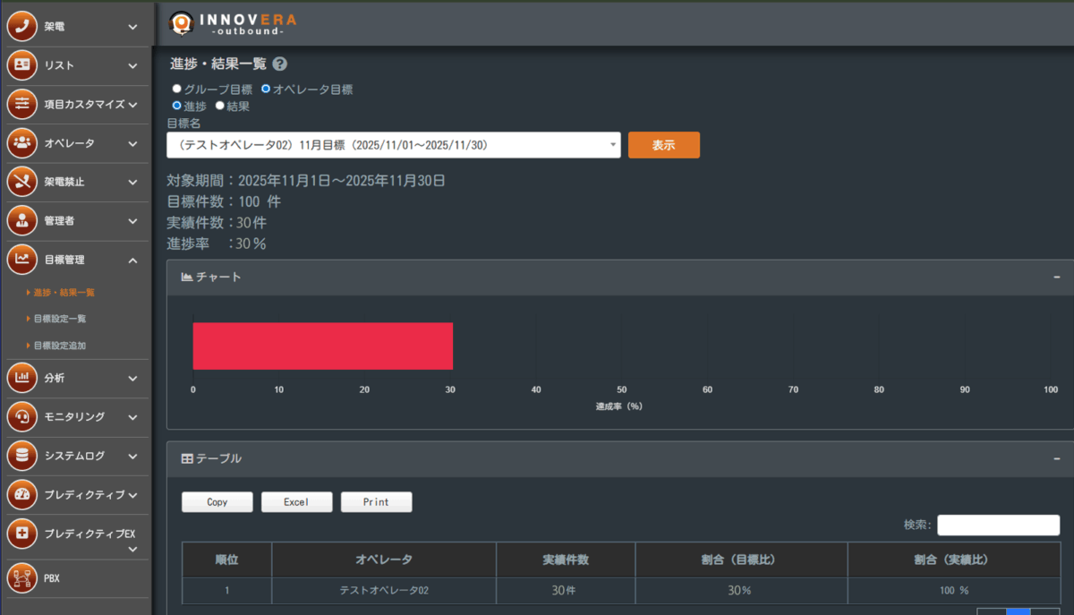 目標管理画面はオペレータ(グループ)の目標までの進捗を一目で確認可能です。